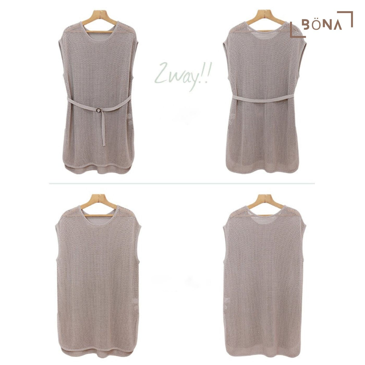 網眼針織束腰外衣配腰帶 Mesh Knit Tunic