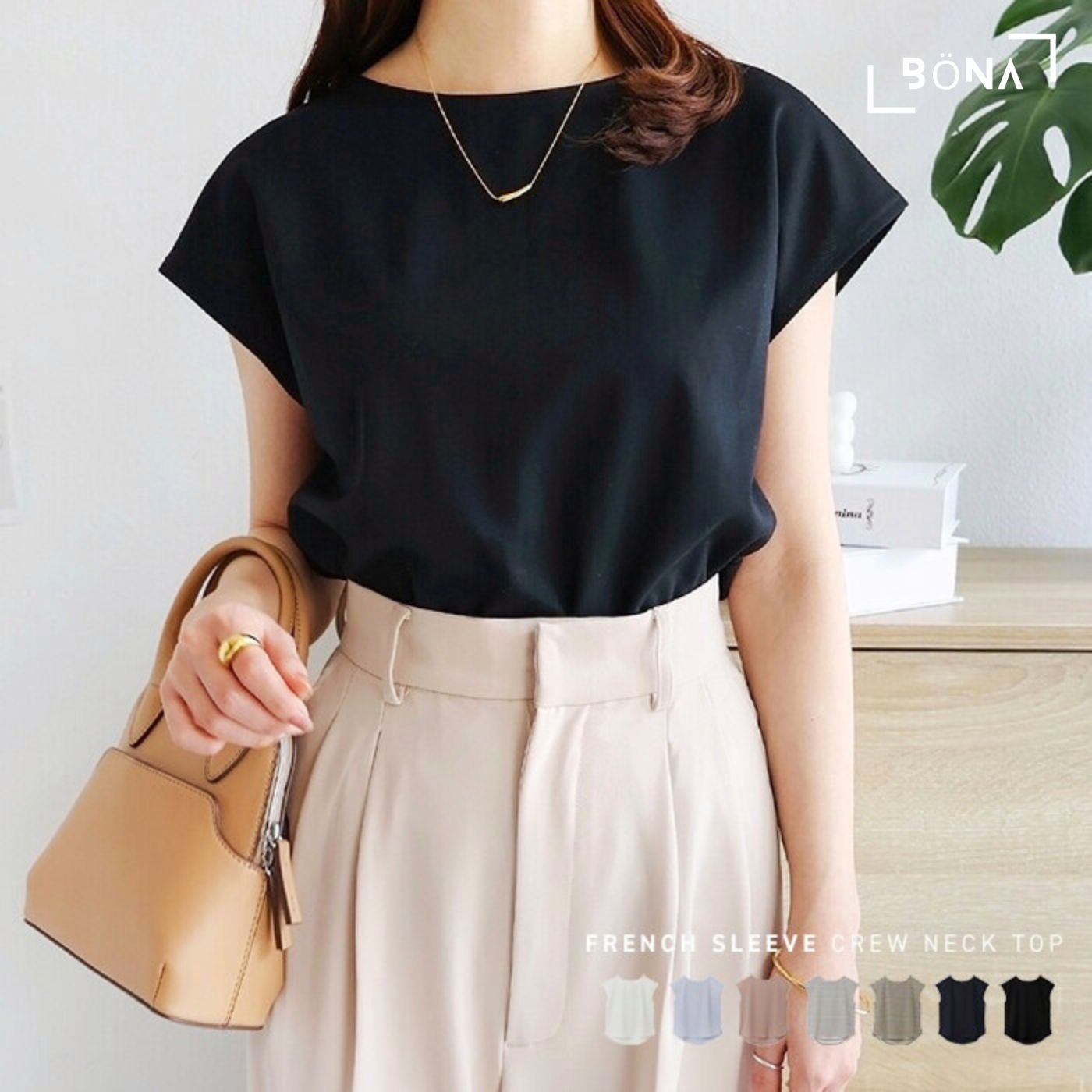 Adding a touch of elegance to slightly thicker cut and sew pieces. The collection features plain and bordered options to choose from. The French sleeves provide moderate coverage for the upper arms, while the loose round neck and tucked back add a subtle nuance to the design. The hem has a unique round shape with a short slit at the waist to keep the front in place. The garment has a perfect fit that is neither too loose nor too tight. It can be worn as a standalone piece or styled with a waist belt. The fabric is slightly thicker, which prevents wrinkles and makes it easy to maintain even after washing.
